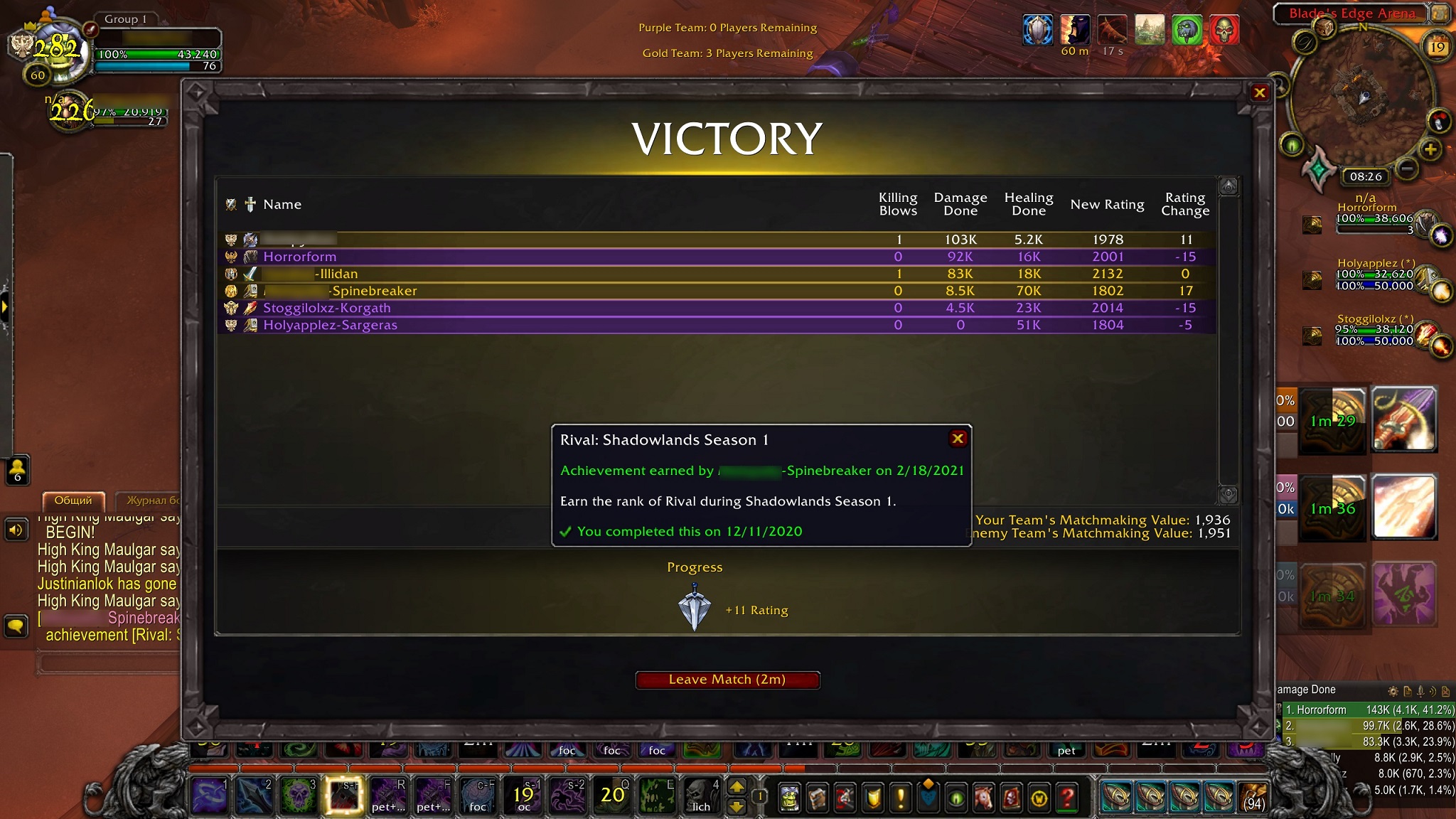 • Valuable experience for 2v2/3v3/rbg arena battles.